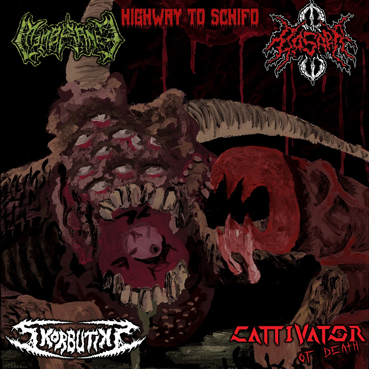 Quattro band dedite alle sonorità estreme un giorno decidono di unire le forze e con il supporto della label Envenomed Music danno vita ad un’oscura creatura che prende la forma di uno split-CD dal titolo “Highway to Schifo”.