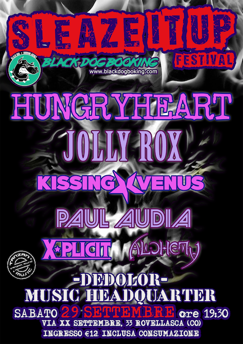 E’ con estremo orgoglio che Black Dog Booking annuncia la prima edizione dello “Sleaze It Up Festival”, un evento esclusivo di musica Sleaze, Hard Rock, Glam che si svolgerà sul bellissimo palco del Dedolor Music Headquarter di Rovellasca (CO) il prossimo 29 Settembre 2018.