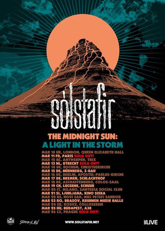Ecco le date che formano il tour europeo dei Sólstafir, denominato “The Midnight Sun: A Light In The Storm”, che passa anche per l’Italia e dalla sola Milano, la band infatti si esibirà al Santeria Social Club il 20 marzo.