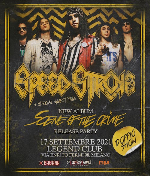 Gli hard/sleaze rocker SPEED STROKE tornano finalmente a Milano per presentare il nuovo album “Scene Of The Crime”, l’appuntamento è per venerdì 17 settembre al Legend Club di Milano, con special guest da annunciare. Si tratterà di un doppio concerto esclusivo a posti limitati, con due scalette completamente differenti, in cui non mancheranno tutte le hit della formazione tanto quanto sorprese chicche inedite che renderanno memorabili le due setlist. Gli ingressi sono su prenotazione attiva da oggi, in calce tutti i dettagli.