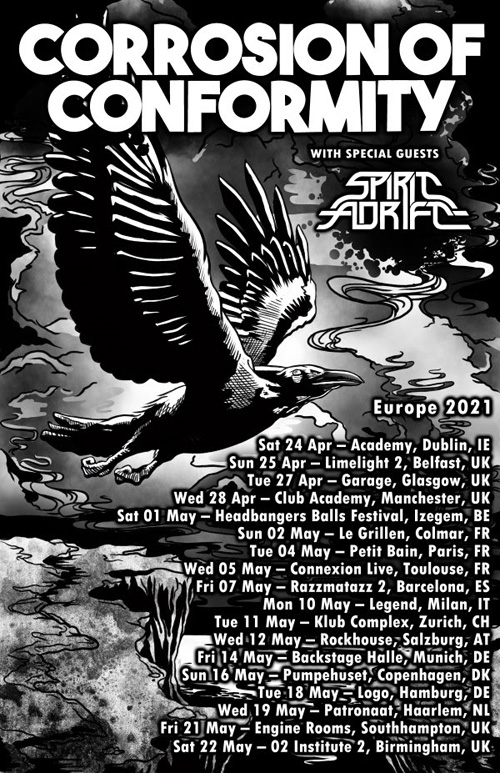 Gli SPIRIT ADRIFT saranno in Europa nel 2021 come main support dei Corrosion Of Conformity. Di seguito tutte le date tra cui una italiana: