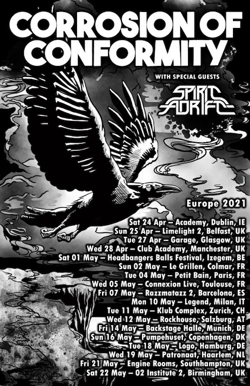 Gli SPIRIT ADRIFT saranno in Europa nel 2021 come main support dei Corrosion Of Conformity. Di seguito tutte le date tra cui una italiana: