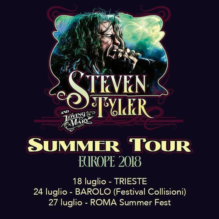 Steven Tyler, leggenda ed icona musicale, vincitore di Grammy Awards, filantropo, inserito nella Rock and Roll Hall of Fame annuncia un tour estivo assieme alla band di Nashville The Loving Mary. Il tour farà tappa in Italia con tre grandi concerti il 18 luglio al Live in Trieste (Piazza Unità d’Italia), il 24 al Collisioni Festival di Barolo (Arena Concerti) e il 27 al Roma Summer Fest presso l’Auditorium Parco della Musica (Cavea).