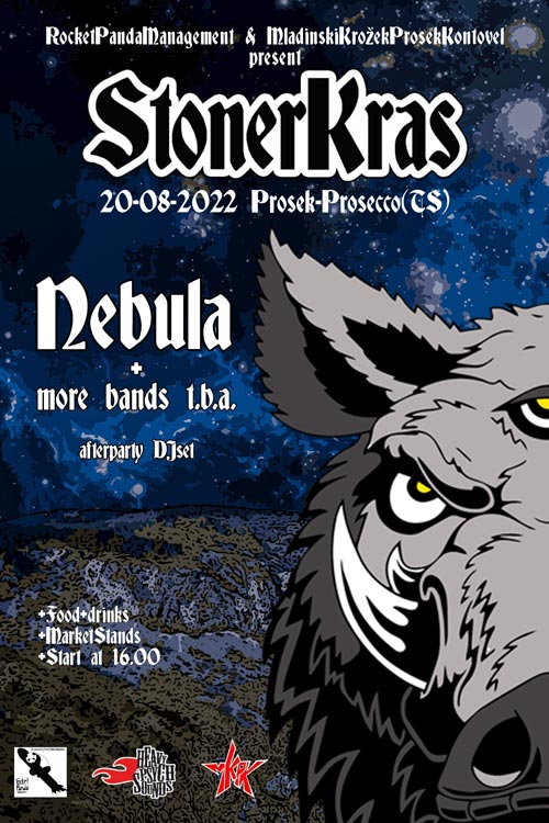 Rocket Panda Management e il Circolo giovanile – Mladinski Krožek Prosek-Kontovel presentano STONERKRAS FEST, la prima edizione del festival heavy-psych sul Carso triestino, il 20.08.2022 a Prosek-Prosecco (Trieste).
