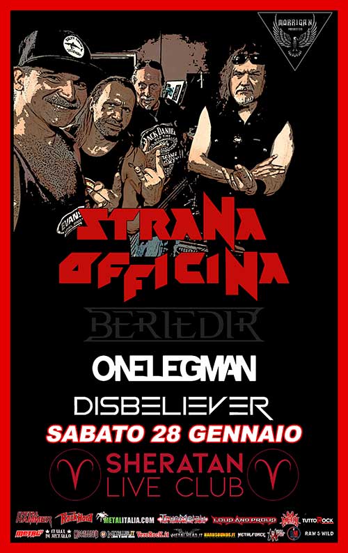 In occasione della data di Sabato 28 gennaio allo Sheratan Live Club – Carpi (MO) (Evento Facebook QUI), sul palco saliranno in apertura i DISBELIEVER con il loro mix di rock e gothic metal potente e moderno con un occhio di riguardo alle atmosfere più sulfuree e alla melodia che li ha più volte portati ad essere assimilati a band come i Paradise Lost. A seguire sarà la volta degli ONELEGMAN, storica band emiliana, la loro proposta è un alternative metal contaminato da svariate influenze musicali. La band negli anni ha diviso il palco con veri mostri sacri del rock ed il loro ultimo album “Event Horizon” ha ricevuto entusiastiche recensioni da parte della stampa specializzata. Poi sarà la volta dei BERIEDIR, la band si muove tra sonorità progressive e power metal creando un perfetto connubio tra melodie variopinte ed eleganti e testi ricercati. Anche loro come la band che li ha preceduti hanno maturato una notevole esperienza live a fianco di illustri nomi.