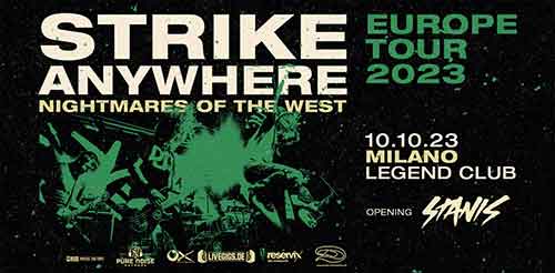 Formatisi nel 1999 a Richmond, Virginia, gli Strike Anywhere sono una band simbolo della scena punk rock americana. I loro brani sono incentrati su temi sociali come gli abusi di potere, la globalizzazione, i diritti degli animali e l’anticapitalismo. Attualmente hanno all’attivo 4 album in studio e svariati EP. Nel 2020 hanno pubblicato “Nightmares Of The West”, un nuovo EP di sette brani che arriva a più di 10 anni di distanza dalla pubblicazione dell’ultimo, acclamatissimo album del 2009 “Iron Front”. Le nuove sette canzoni che compongono l’EP – tra le quali figura una cover di “Opener” della band londinese Blocko – sono piene rabbia ed energia come tutto il materiale scritto in precedenza dalla band, a riprova del fatto che Thomas Barnett e soci sono sempre fedeli a loro stessi. Allo stesso modo, questo EP infonde la visione ideologica della band con la prospettiva che hanno ora i suoi membri, sia come persone, ma anche come attivisti politici e musicisti che attualmente vivono negli Stati Uniti, un Paese nettamente diverso da com’era quando nel 2009, proprio l’anno di pubblicazione di “Iron Front”.