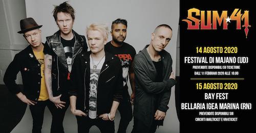 HUB Music Factory è lieta di annunciare il ritorno in Italia dei SUM 41 – due date previste durante l’estate 2020: il 14 Agosto a Majano e il 15 Agosto al Bay Fest di Bellaria (Rimini).
