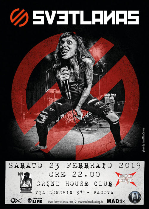 Punk dalle steppe e non! Siamo felici di annunciarvi la venuta in terra padovana, sabato 23 febbraio, di un grande gruppo punk, tra i più originali e interessanti degli ultimi anni: stiamo parlando degli Svetlanas, capitanati dall’inarrestabile Olga! Punk senza fronzoli, dal messaggio deciso e chiaro portato avanti con irruenza e passione, fino alle estreme conseguenze (come l’esilio dalla Russia o il turbolento tour Americano) che ne han creato il mito.