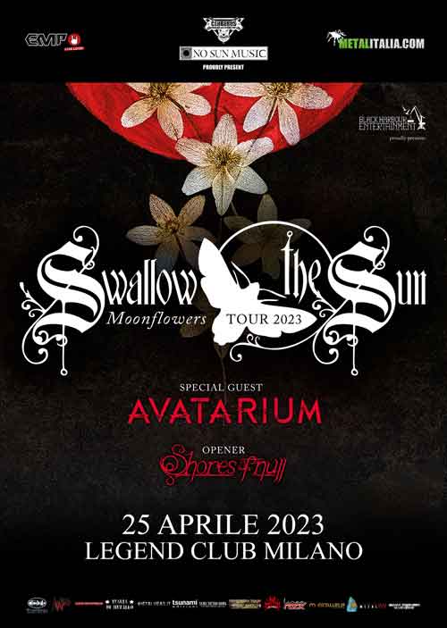 Dopo l’ultimo rinvio forzato del 2021, tornano i finlandesi Swallow The Sun! La band di Juha Raivio sarà in tour il prossimo anno passando anche per Milano al Legend Club, per la loro unica data italiana il 25 Aprile 2023. Uno spettacolo coinvolgente, dalle atmosfere uniche, in cui il combo finlandese proporrà per la prima volta i brani dall’ultimo “Moonflowers”, uscito a novembre 2021 via Century Media Records.