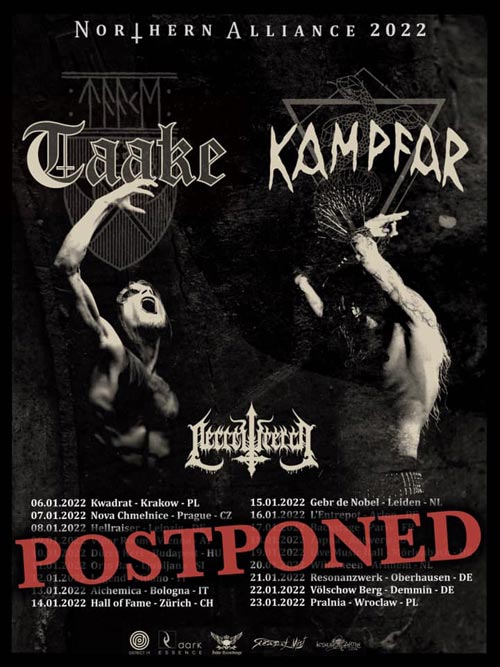 A causa della solita emergenza sanitaria globale, il tour di TAAKE e KAMPFAR che era previsto per gennaio 2021, poi posticipato a gennaio 2022… è ora nuovamente posticipato a data da definirsi.