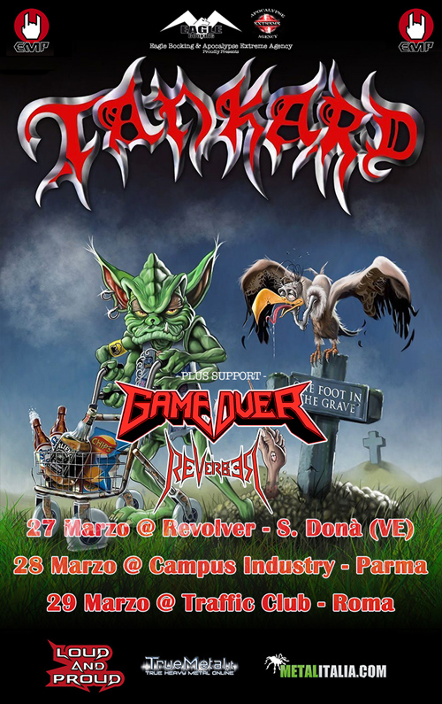 I thrashers GAME OVER ed i REVERBER sono stati confermati come band di supporto per le date italiane dei mitici TANKARD!!