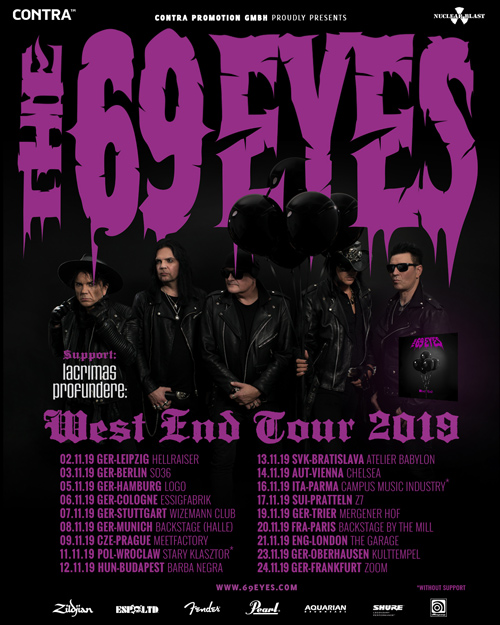 A novembre, i THE 69 EYES saranno in tour in Europa, accompagnati dalle icone tedesche del gothic rock LACRIMAS PROFUNDERE.