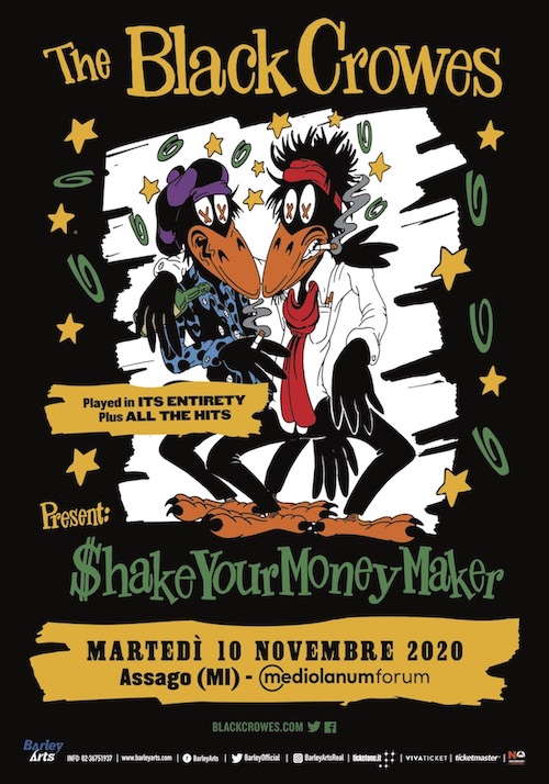 Milano, 3 Febbraio 2020 – Chris e Rich Robinson dei The Black Crowes festeggiano il trentesimo anniversario del loro storico album di debutto Shake Your Money Maker, cinque volte disco di platino, con un tour di UK ed Europa che avrà inizio il 10 ottobre alla 3Arena di Dublino. Il tour proseguirà attraverso l’Europa e il Regno Unito e arriverà in Italia martedì 10 novembre, con una data unica al Mediolanum Forum di Assago (Milano). I biglietti nominali saranno in vendita sui circuiti autorizzati Ticketone, Ticketmaster e Vivaticket dalle 9 di venerdì 7 febbraio, con una presale ufficiale dedicata al fan club della band che si aprirà alle 9 di mercoledì 5 febbraio.
