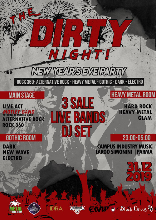 Finalmente un sogno che diventa realtà, la risposta definitiva alla domanda “Cosa facciamo a Capodanno?”. Lasciate da parte qualsiasi indecisione, per la notte più scintillante dell’anno il mondo del rock e della trasgressione è al Campus Music Industry di Parma. Lo storico locale ancora una volta si conferma come il più importante tempio del divertimento dell’Emilia Romagna ospitando “THE DIRTY NIGHT!”, la festa di capodanno più irriverente d’Italia: il paese dei balocchi, il regno della perdizione, un posto dove i sogni diventano realtà.Dal Metal al Rock, dalla Dark Wave alla New Wave, passando dal Glam alle sonorità più ricercate come Ebm e techno. 3 Sale con tre stili differenti per ogni stato d’animo e gusto.