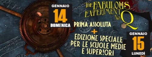 Musical Industrial Rock, con ampi respiri poetici. Scritto e diretto da Paolo Vallerga, lo spettacolo è tratto dall’Opera Steampunk “The Experiment no.Q” e viene suonato e cantato dal vivo. Le coreografie di Lucia Carnevale sono interpretate da un corpo di ballo formato da 12 giovani allievi della Scuola di Musical.