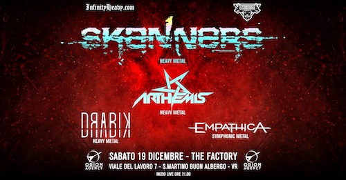 A causa delle misure di contenimento del Covid-19, il concerto con Skanners, Arthemis, Drabik ed Empathica che si sarebbe dovuto tenere il prossimo 30 aprile, al The Factory di Verona, sarà rinviato a sabato 19 dicembre 2020.