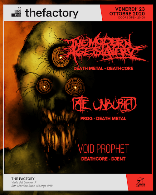Prima di loro avremo i Fate Unburied, band prog-death di Vicenza di assoluta qualità, e i Void Prophet, band deathcore-djent Veronese che presenterà al pubblico il loro primo EP intitolato “Graze of Collapse” uscito lo scorso 17 Luglio.