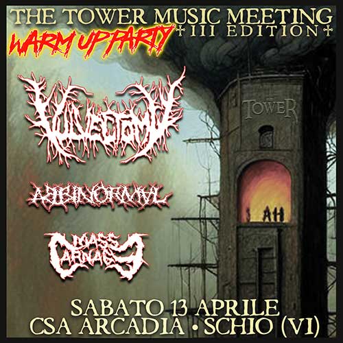Il The TOWER Music Meeting festival annuncia per la prima volta suo WARM UP PARTY, in programma il prossimo 13 Aprile presso il csa Arcadia di Schio (VI).