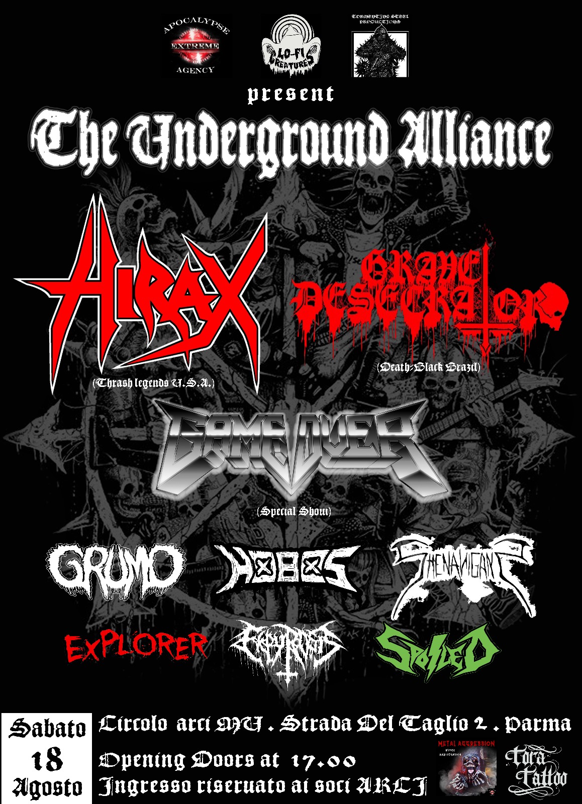 Manca pochissimo al “The Underground Alliance Fest”, che si terrà Sabato 18 Agosto presso il circolo Arci MU di Parma.