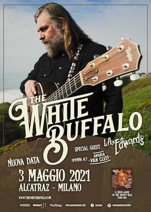 Posticipata di nuovo la data unica italiana di THE WHITE BUFFALO, per l’emergenza sanitaria che stiamo attraversando. L’artista sarà dal vivo lunedì 3 maggio 2021 all’Alcatraz di Milano, in compagnia di L.A. EDWARDS come special guest e ANDREA VAN CLEEF in apertura.