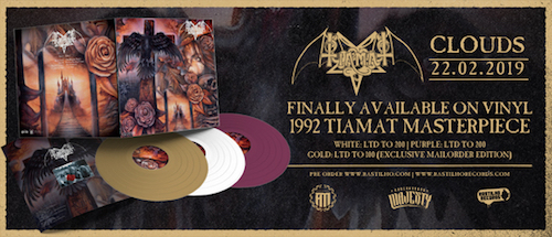 La Alma Mater Records di Fernando Ribeiro dei Monspell, annuncia la terza uscita della serie “Underground Majesty”, ovvero il terzo album dei Tiamat “Clouds”. Il formato scelto dall’etichetta è quello in vinile e sarà in versione limitata, complketamente rimasterizzata e con artwork e note testuali originali. Tre invece i colosi scelti per questo disco: oro, porpora e bianco.
