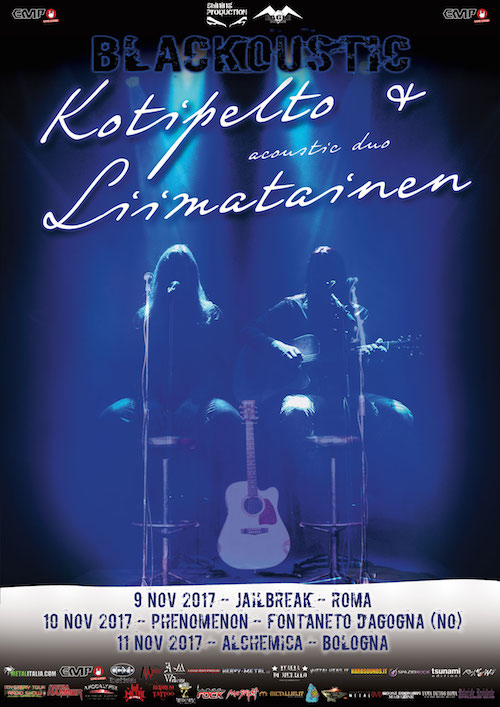 Dopo il successo della scorsa stagione torna in Italia il progetto “Blackoustic”, ideato e interpretato dai finlandesi Timo Kotipelto (voce degli Stratovarius) e Jani Liimatainen (virtuoso chitarrista finlandese ex membro dei Sonata Arctica). Lo spettacolo sarà composto da celebri brani di STRATOVARIUS e SONATA ARCTICA, ma anche da celebri brani metal ed hard rock, fatta eccezione per il brano “Where My Rainbow Ends”, scritto da Liimatainen.
