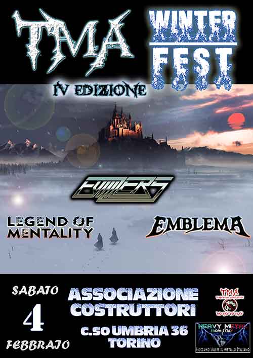 Dopo tre anni di stop a causa della pandemia ritorna il TMA Winter Fest con il suo carico di musica metal underground per la IV edizione. Sabato 4 febbraio si esibiranno sul palco allestito presso l’Associazione Circolo Costruttori di Torino: