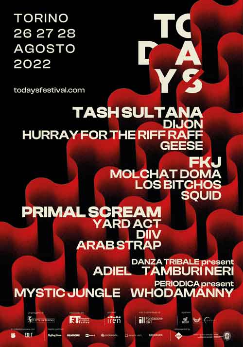 TOdays porterà per tre giorni, dal 26 al 28 agosto 2022, 96 artisti per 16 band, delle quali 11 in esclusiva unica nazionale e 14 per la prima volta a Torino.