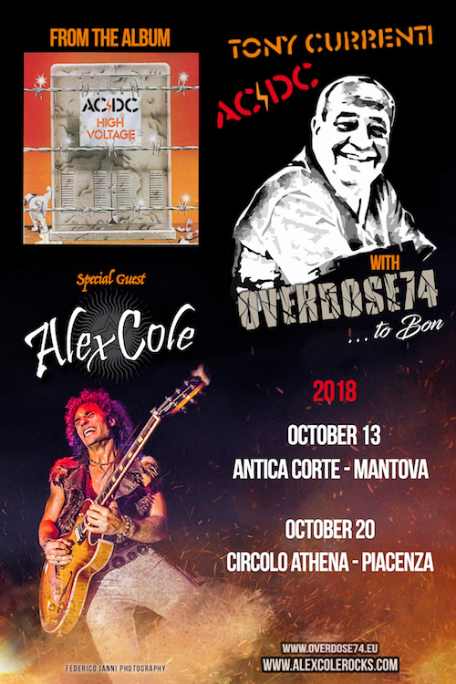 ALEX COLE sarà GUEST ARTIST per TONY CURRENTI e i grandiosi Overdose ’74. Tony è il leggendario batterista che ha registrato “High Voltage” e altri successi memorabili con la band AC/DC. Alex sarà ospite di Tony sul palco per due dei suoi quattro spettacoli in Italia.