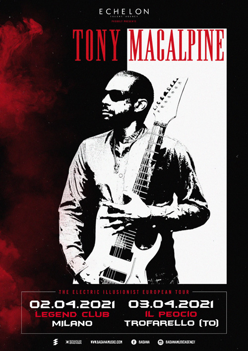 Posticipati al 2021 i due concerti del virtuoso chitarrista Tony MacAlpine, che sarà dal vivo venerdì 2 aprile al Legend Club di Milano e sabato 3 aprile 2021 a Trofarello (TO) presso Il Peocio. Nel rispetto delle vigenti normative i posti sono limitati, le prevendite sono attive da oggi sul circuito ufficiale Mailticket per la data milanese.