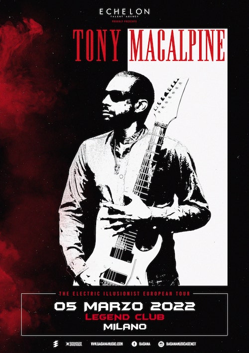 Posticipato al 2022 l’appuntamento dal vivo con il chitarrista Tony MacAlpine, che sarà nel nostro Paese per una tappa unica sabato 5 marzo al Legend Club di Milano. I biglietti già venduti rimangono validi per la nuova data, nuovi ticket sono da ora disponibili in prevendita sui circuiti ufficiali Ticketone e Mailticket.