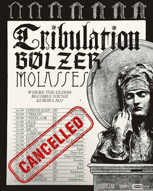 È con dispiacere che Hellfire Booking Agency, in collaborazione con Erocks Production, annuncia la cancellazione dell’intero tour dei Tribulation, che avrebbe fatto tappa nel nostro Paese il 23 settembre 2022 allo Slaughter Club di Paderno Dugnano. Purtroppo a causa degli ultimi sviluppi internazionali legati alla pandemia, le band si sono viste impossibilitate a proseguire.