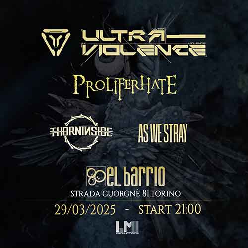 Con loro, a condividere oneri e onori dell’etichetta di headliners ci saranno i Proliferhate, sodalizio metal con il suo inconfondibile progressive melodic death. A scaldare il pubblico in apertura ci penseranno i Thorn In Side, giovane metalcore band in ascesa e reduce dall’apertura del live dei Within Destruction dello scorso gennaio, e gli As We Stray, milanesi alla primissima sotto la Mole, che vantano aperture di grande prestigio (Meshuggah e At The Gates) e proporranno un metal con influenze post-hardcore.