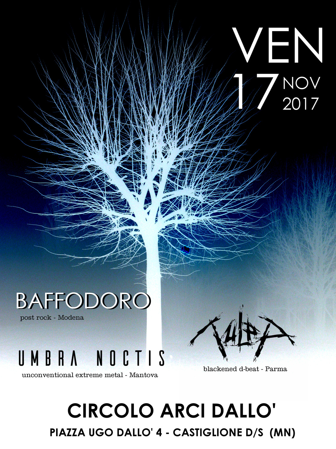 VENERDI’ 17 NOVEMBRE 2017 : BAFFODORO+UMBRA NOCTIS+TULPA