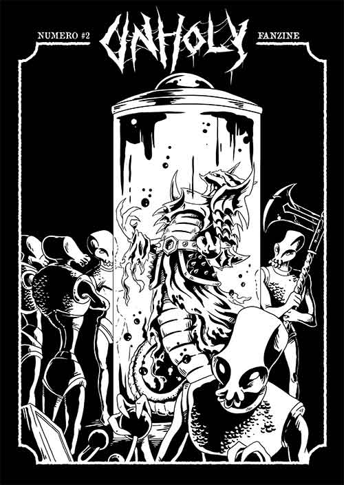 fanzine Unholy celebra icone ddel genere, con articoli dedicati a band quali Massacre, Horreondus, Cripple Bastards, Golem of Gore, Corpsessed e molti altri.