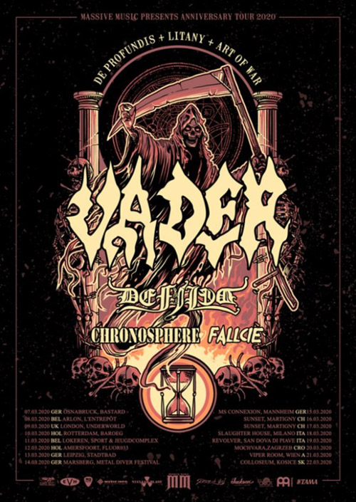 Per onorare queste occasioni storiche, i VADER hanno dedicato un intero anniversary tour a queste quattro opere, che porterà la band in giro per l’Europa a Marzo 2020, con il supporto dei DEFILED, CHRONOSPHERE e FALLCIE.