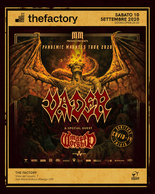 Sa Produzioni, Orion Agency e The Factory sono orgogliosi di presentare l’UNICA DATA ITALIANA del “Pandemic Madness Tour” dei VADER: band internazionale nonchè pilastro storico del genere Death Metal. Per l’occasione, presenteranno il loro ultimo disco “Solitude in Madness” uscito lo scorso Maggio 2020.