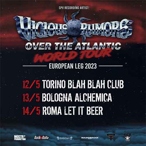 Mostro Production, RocknRolla ed Etrurian Legion sono fieri di annunciare le tre date italiane dei Vicious Rumors. I veterani dell’heavy metal hanno annunciato il tour europeo, con tre date italiane nel mese di maggio. Per l’occasione, la band proporrà dal vivo un set tratto da tutti gli album pubblicati da Atlantic Records. Alla voce l’ex cantante dei Metal Church, Ronny Munroe.