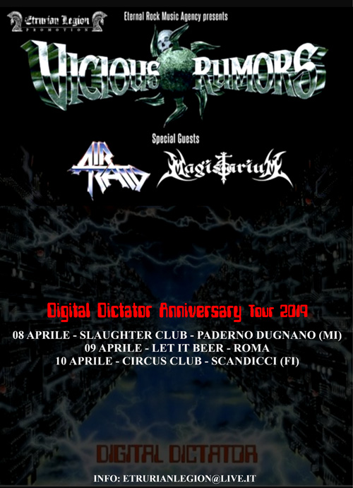 Le date Italiane di aprile del tour “30 YEARS OF DIGITAL DICTATOR” dei Vicious Rumors sono state modificate come di seguito: