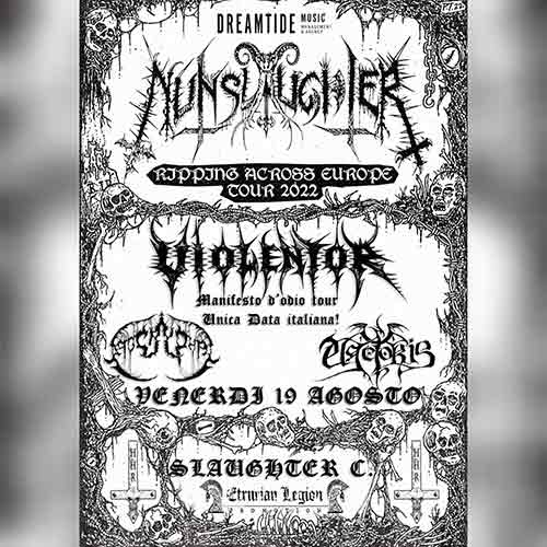 Venerdì 19 agosto i Violentor suoneranno la loro unica data italiana del tour dell’album “Manifesto di Odio”. Con la band allo Slaughter Club di Paderno Dugnano (MI) ci saranno anche gli statunitensi Nunslaughter, headliner del concerto, nonché Unctoris e Apocryphal.
