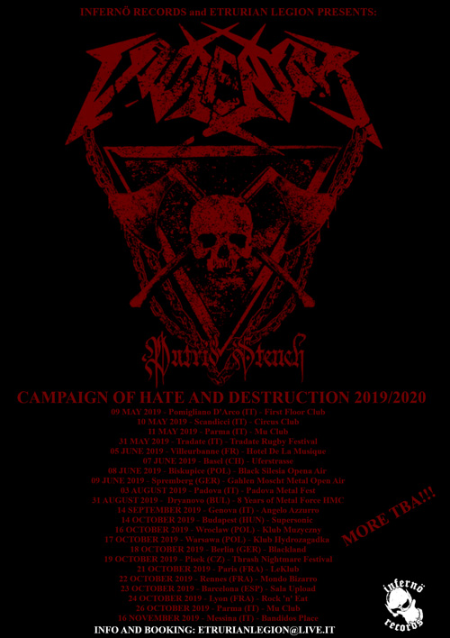 La Turneè “CAMPAIGN OF HATE AND DESTRUCTION” si abbatterà su tutte le nazioni Europee e coprirà anche Ucraina, Georgia, Armenia, Stati Uniti e Sud America nel 2020.