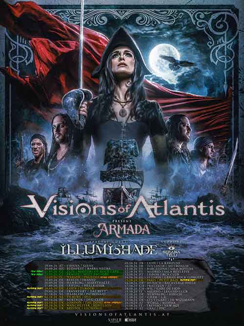 I Vision Of Atlantis terranno un tour europeo per promuovere il prossimo album “Pirates II – Armada” in uscita il 5 luglio per Napalm Records. Nel tour ci saranno anche gli Illumishade, modern metal band svizzera, e Seraina Telli. Il tour vedrà anche l’Italia tra le destinazioni della ciurma imbastita dai Visions Of Atlantis, con un concerto il 26 ottobre al New Age di Roncade, Treviso.