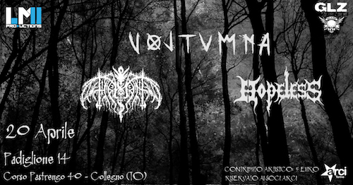 Estremi, distruttivi, selvaggi. Giramondo ma profondamente etruschi. Sono i VOLTUMNA, extreme metal band viterbese che sabato 20 aprile si esibirà sul palco del Padiglione 14 in una serata totalmente dedicata al Black/Death Metal organizzata da LM Productions e GLZ Eventi.