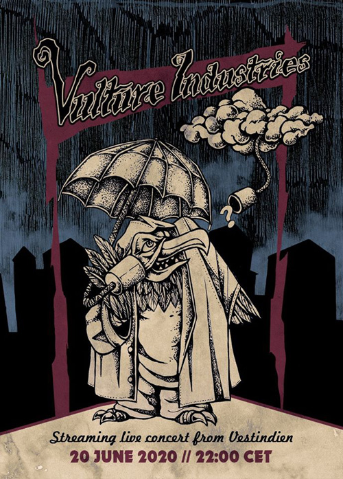 I VULTURE INDUSTRIES annunciano lo streaming del loro prossimo concerto, il quale si terrà nella location storica Vestindien a Bergen in Norvegia. L’evento unico si terrà il 20 giugno a alle ore 22:00 (CET). Lo stream è completamente gratuito e sarà disponibile attraverso il canale youtube e la pagina facebook della band.