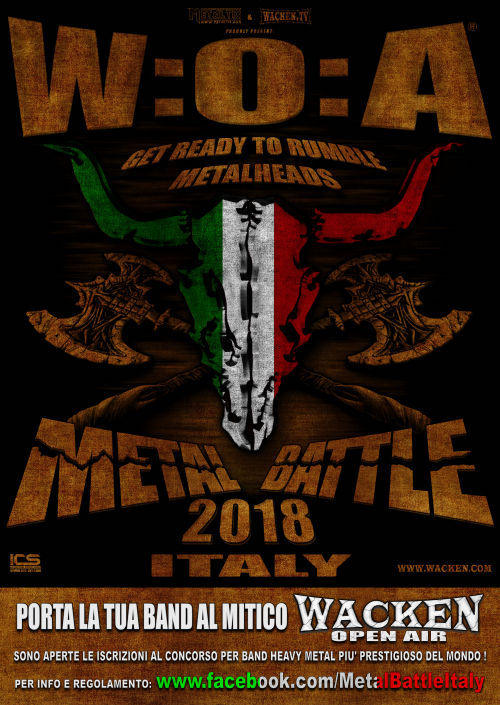 A partire dal 9 gennaio e fino alle ore 24:00 del 16 aprile 2018, sarà possibile iscriversi al concorso per band Heavy Metal WACKEN METAL BATTLE ITALY 2018!