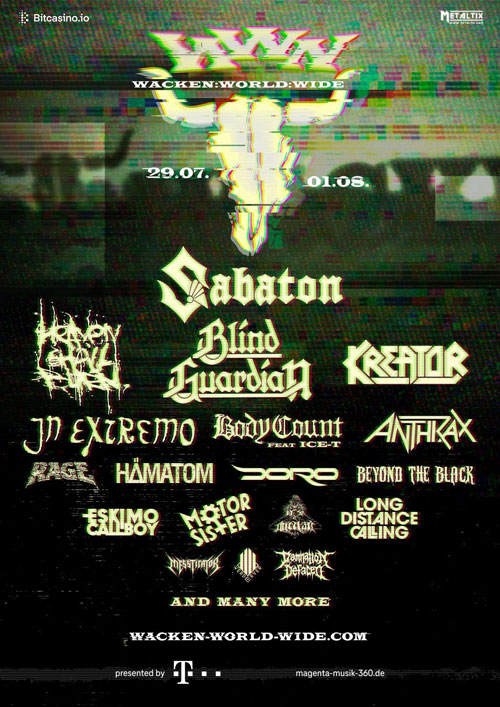 A proposito del Wacken World Wide: gli organizzatori del Wacken Open Air hanno collaborato con il loro partner Telekom per annunciare il più grande festival digitale mai realizzato. Il Wacken World Wide mette in contatto gli artisti e il loro pubblico in tutto il mondo con un’incredibile tecnologia e innovazione. I fan non saranno semplici spettatori, ma una parte di questa autentica esperienza dal vivo: vari programmi permettono ai fan di partecipare, interagire e vivere gli artisti da vicino, metterli attivamente al centro dell’azione e proprio di fronte al palco digitale.
