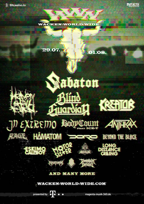 Il Wacken World Wide, ovvero la ‘versione in streaming’ del celebre festival internazionale di musica metal che si tiene ogni anno in Germania, avrà inizio il 29 luglio e durerà fino al primo giorno di agosto, come già comunicato in precedenza. Ora la direzione annuncia gli ospiti alla manifestazione nella prima giornata del festival virtuale. Body Count feat. Ice-T, Rage, Doro, Anthrax, Motor Sister, Eskimo Callboy, Long Distance Calling e poi Rise of Mictlan.