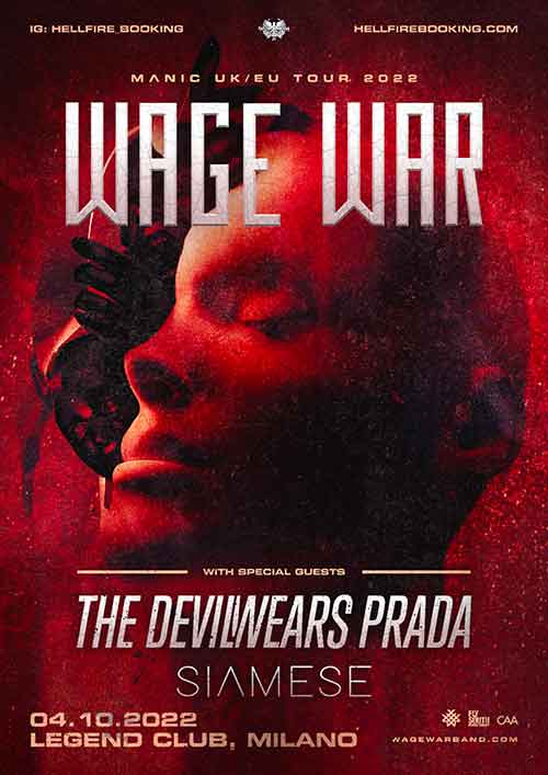 Finalmente si torna a far sul serio. Hellfire Booking Agency, in collaborazione con Erocks Production, annuncia lo straordinario ritorno dei Wage War, accompagnati da The Devil Wears Prada e Siamese!