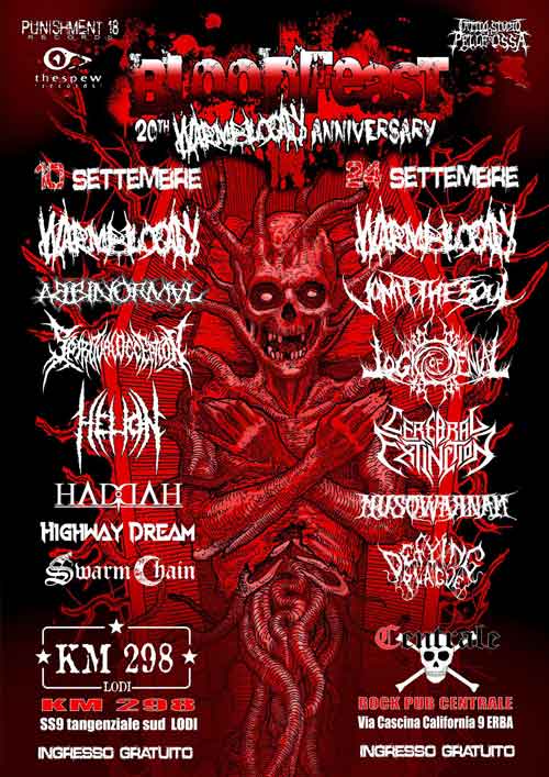 Per festeggiare i 20 anni di attività la band dei Warmblood ha organizzato un festival: BLOODFEAST -20 th Warmblood Anniversary- con 12 band suddiviso in due differenti location e in due differenti date.