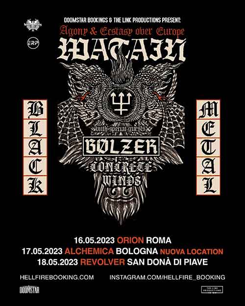 Hellfire Booking Agency annuncia un cambio location per i Watain. La band black metal, la cui esibizione era prevista al Campus Industry di Parma per il 17 maggio, attraccherà invece all’Alchemica di Bologna, ritrovo di fiducia del metal estremo emiliano.